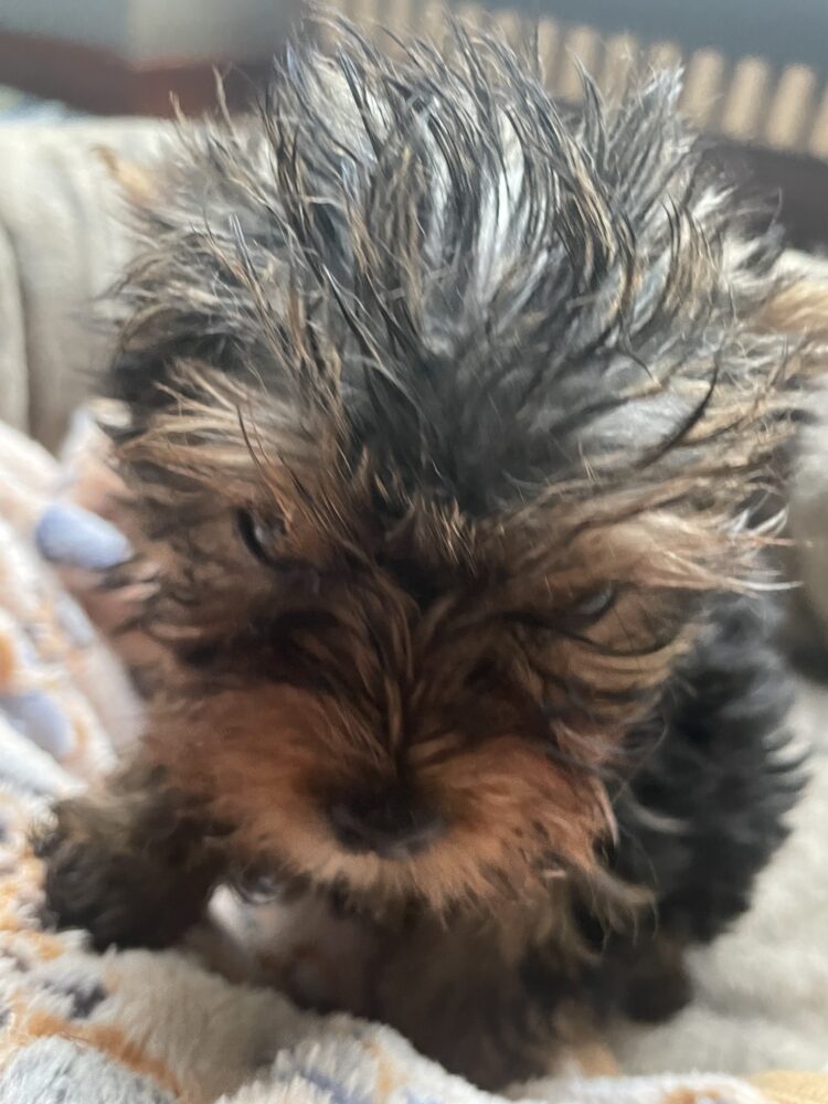 Unser Walking on Sunshine, genannt Sunny , reinrassiger Yorkshire Terrier Welpe, Rüde, geb. 19.9.25, stahlblau und tan, sucht ab Ende…