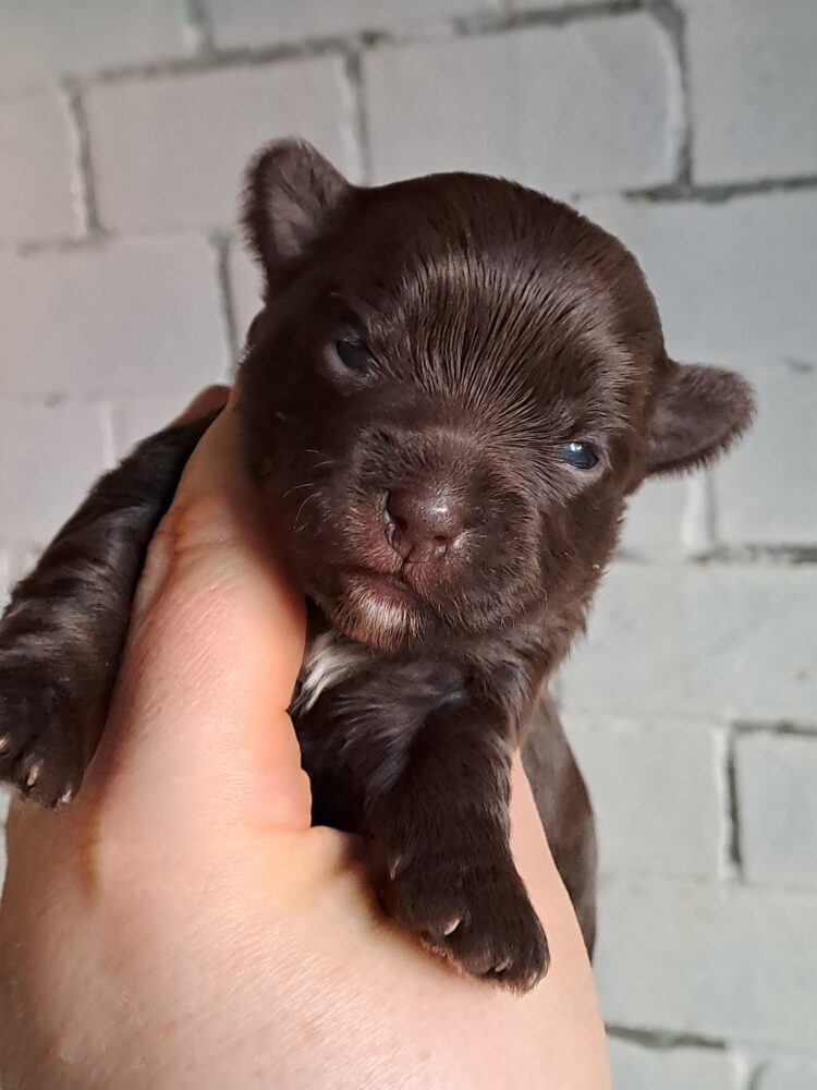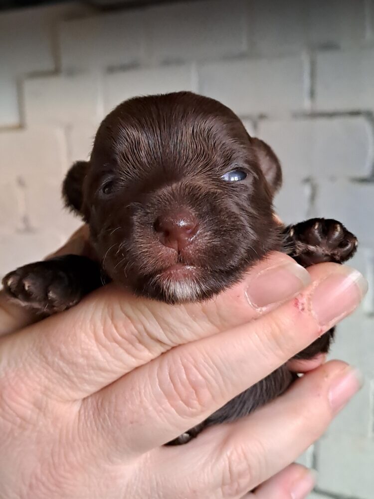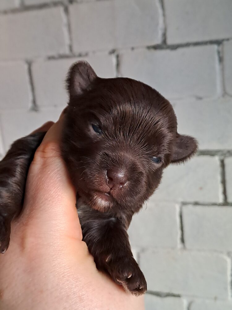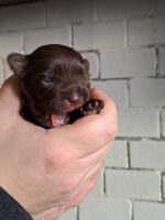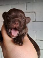 Am 17.11.25 wurde diese zauberhafte Yorki Prinzessin in Schoko geboren. Ihre Geschwister sind schon vergeben. Ausgewachsen wird sie ungefähr 2,5kg…